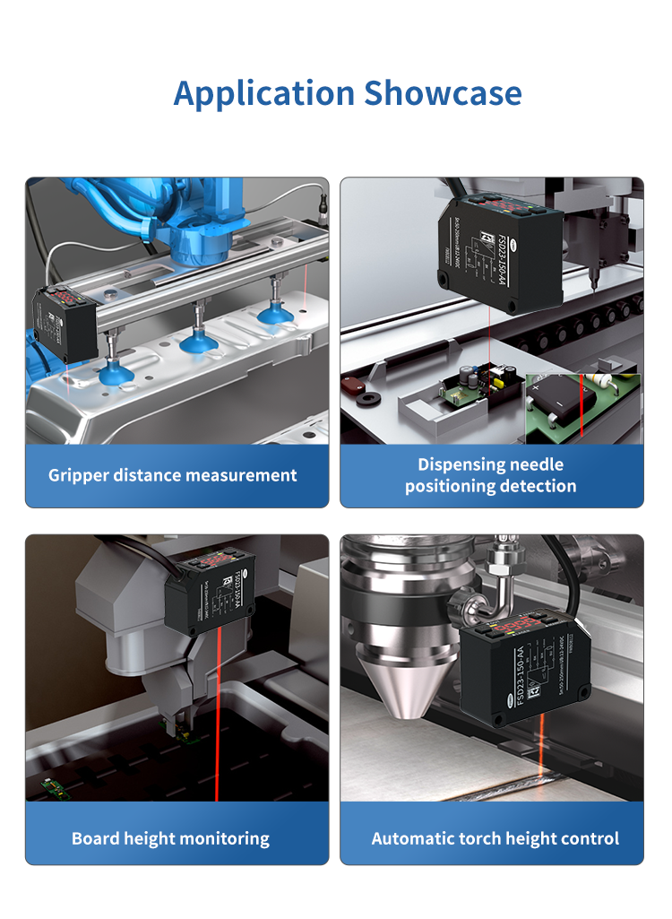 เซ็นเซอร์แบบดั้งเดิมมักถูกบังคับให้ปรับแต่งอุปกรณ์หลายรุ่นเนื่องจากช่วงแคบ (เช่นช่วงการตรวจจับ 30 มม. คงที่) ส่งผลให้ต้นทุนการปรับใช้สายการผลิตเพิ่มขึ้น อย่างไรก็ตามเซ็นเซอร์การกระจัดเลเซอร์ซีรีย์ FSD23 ตระหนักถึงช่วงการตรวจจับที่ปรับได้อย่างต่อเนื่อง 10 มม. ถึง 250 มม. ผ่านเทคโนโลยีการโฟกัสแบบไดนามิกแบบออพติคอลที่พัฒนาขึ้นด้วยตนเองซึ่งเหมาะสำหรับทุกสถานการณ์ตั้งแต่ข้อต่อประสานชิปไมครอนไปจนถึงช่องว่างโลหะแผ่นยานยนต์