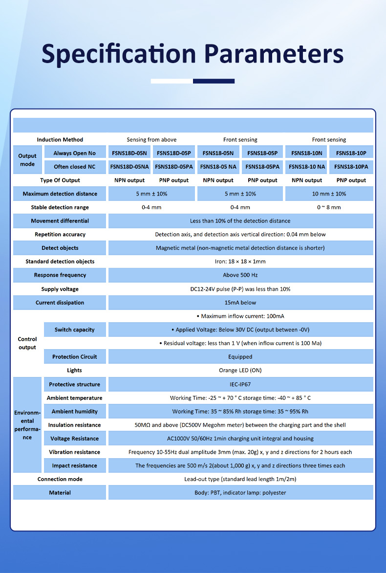 ตอบ: ความแตกต่างหลักคือฟอร์มแฟคเตอร์และการติดตั้ง เซ็นเซอร์ทรงสี่เหลี่ยม เช่น FSNS18D-05 มักจะติดตั้งอย่างแน่นหนาบนพื้นผิวเรียบได้ง่ายกว่า และอาจมีโปรไฟล์ที่กะทัดรัดกว่าในการติดตั้งบางอย่าง